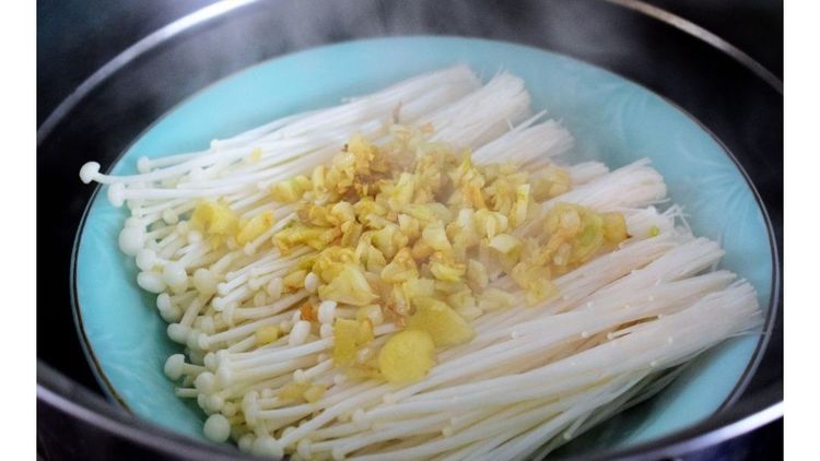 做法: 1、金针菇看起来精神饱满。 ![]() 2、把根部切掉。这里说一个小插曲,之前我在哪里看到过一个节目,说是金针菇把根切下来,可以自己养着,让它再长出新的,这样就不用去买金针菇了,于是我就按照那个方法,结果失败了,不仅没长出来,还发霉了。这个金针菇毕竟它不便宜,7块钱一斤,我也不知道是不是真的有这样的培育方法,如果你会培育金针菇,可以教我哦! ![]() 3、把金针菇撕成小条,泡水清洗干净,捞起来沥干水分,一定要清洗干净哦! 可能有的朋友说,不会洗金针菇,这里我教你三个方法: a.焯水(这个方法最简单最常用)www.eeali.com b.用塑料袋清洗,把金针菇切掉根以后,整棵放进塑料袋装水,封口打结,用手来回的搓,中间再换两次水,重复的搓,就能洗干净了。 c.洗米水浸泡法,这个洗米水的作用很大,我做排骨的时候都会用到它,它能有效的去除污垢,提前用洗米水浸泡三个小时就可以了。 ![]() 4、把蒜和姜切成沫备用,不要切得太碎,中等个头就可以了。 ![]() 5、锅里放少量油烧热,就关火。再下入蒜沫和姜沫,因为关火了,油温会迅速下降,这样的蒜和姜就不容易烧焦,香气也容易出来。 ![]() 6、把沥干水分的金针菇装盘,然后把锅里的蒜沫和姜末倒在金针菇上面。 ![]() 7、上蒸锅蒸5分钟,这个时间我们准备一个碗,金针菇在蒸的时候,盘子里会有水溢出来,把盘子里的水倒在碗里,撒点盐,倒点生抽,再淋到金针菇上面。 ![]() 8、然后继续大火蒸1分钟就可以出锅啦!www.eeali.com ![]() 9、最后撒点葱花,点缀一下,好香啊! ![]() 这样一道蒜蓉蒸金针菇就好了,又香又美味,刚上桌没几分钟就夹光了,完全不够吃啊。不过做为掌勺的人来说,自己做的菜被家人吃光,是最幸福的事。我记得曾经有位朋友跟我说,你做的菜怎么这么好吃,我做的就不好吃呢?我告诉她,做菜是要融入爱的,当你把爱心融入到美食当中,心中想的是要让家人吃得健康,吃得过瘾,做出来的菜自然而然就别有一备风味! ![]() | |