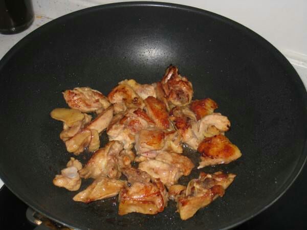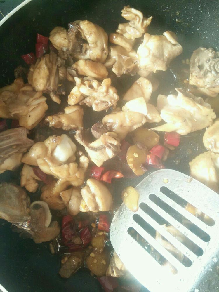 小笨鸡一只,干榛菇或干香菇50g,红薯粉条100g 配料: 八角、花椒、生姜、小葱、料酒、干辣椒、桂皮、鸡精各适量。 ![]() 做法: 一、提前一个小时将干菇、粉条用凉水泡好、洗净(注意:粉条不宜泡得时间过长,以便于后续吸收汤汁)。 二、将小鸡斩成小块。姜切片,葱、辣椒切段。www.eeali.com ![]() 三、鸡块焯水后捞出。 四、炒锅加油(50克),油七层热时鸡块下锅煸炒,使鸡块内部水分充分渗出至鸡块发黄,盛出备用。 ![]() 五、炒锅加少许油,葱、姜、蒜、干辣椒煸炒出香味,鸡块、蘑菇入锅翻炒,加热水至淹没鸡块,加八角、桂皮、料酒,大火烧开转小火炖10分钟,使鸡肉、蘑菇的香味充分溶入汤中,再放入粉条、盐,慢炖20分钟。出锅前放入鸡精,出锅后撒上葱花、香菜即可。 ![]() 六、成品,美味吧! ![]() | |